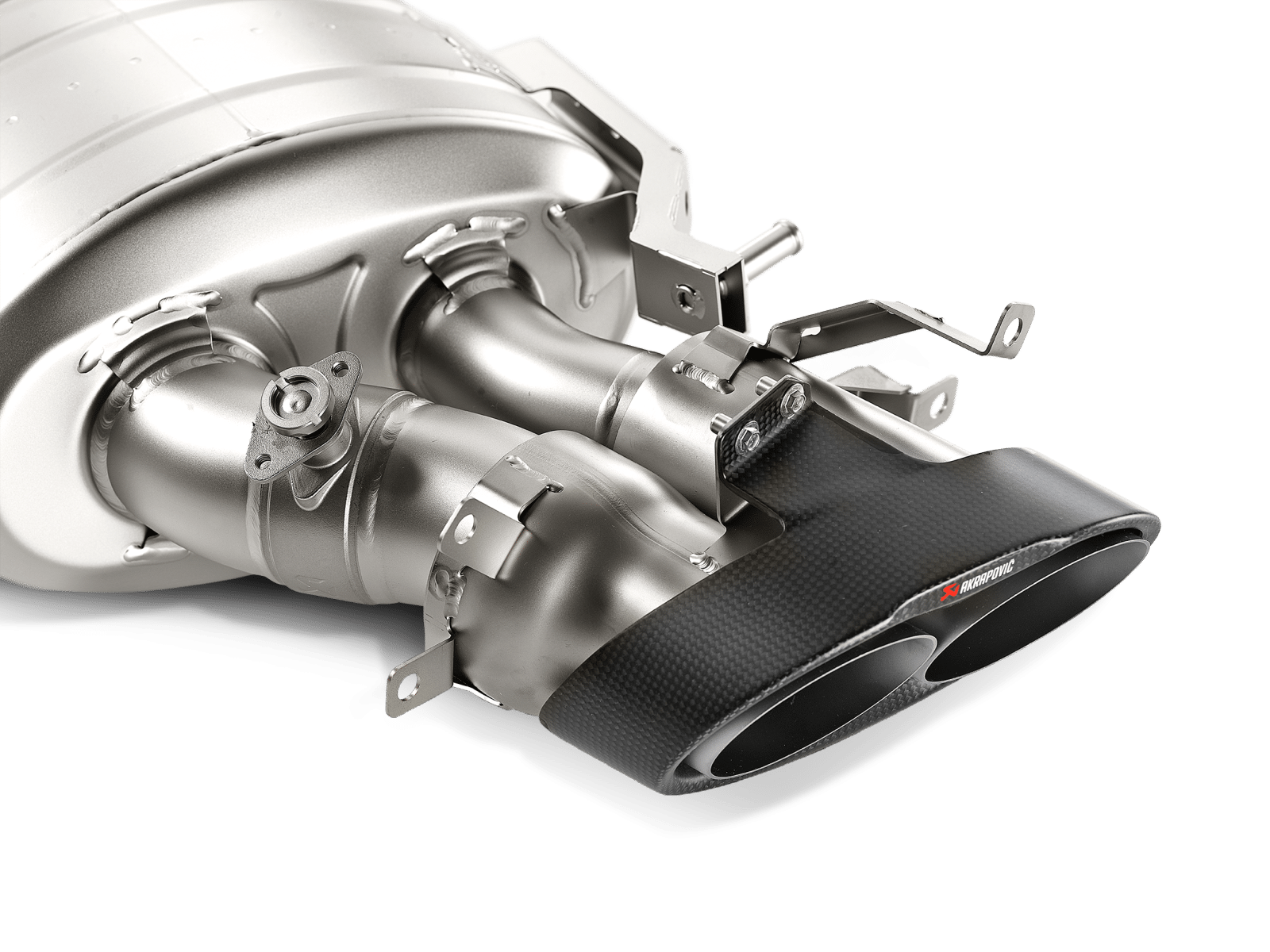 Audi’s high-performance RS models are an ideal match for the expertly styled and beautifully engineered Akrapovič Evolution exhaust systems. The Evolution gives more power, higher torque, decreases the weight, and delivers an unmistakable Akrapovič sound—which has a deep sound at lower revs and a ‘popping’ sound as things speed up when the throttle is lifted. This titanium exhaust system has cast collectors and three mufflers, with the central one featuring an x-piece inside, which increase power and improve its sound. The valves of the system are designed to open and close in line with the RS’ standard electronics, and the whole system has carbon-fibre tailpipes to show off the exquisite finish of the Akrapovič exhaust. Its easy-to-fit instructions are included, and with this cat-back performance exhaust system—which means that the stock catalytic converters remain in place—there’s no need to remap the ECU (it’s simply a plug-and play system).