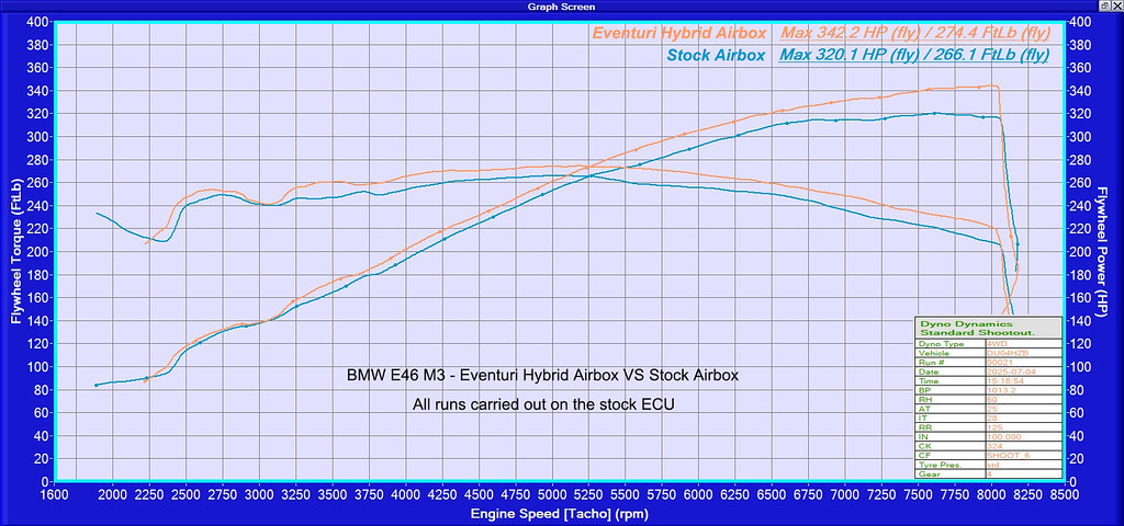 This intake has been independently dyno tested by Dream Automotive in the UK. Tests were done back to back against the stock airbox and several runs were taken with each configuration. The dyno results show a consistent gain throughout the RPM range which can be attributed to the smoother pathway through the intake and airbox to the throttle bodies. The performance gain translates on the road to increased part throttle and full throttle response with the car pulling much more eagerly to the redline.