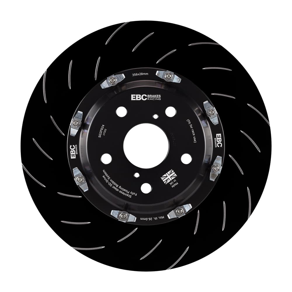 - OR as a simple bolt-on 2-piece floating upgrade for vehicles with 1-piece cast iron discs fitted as standard. Where the vehicle has a 2-piece pin-drive brake disc as original equipment, EBC’s SG2F 2-piece disc upgrade seamlessly replaces the pin-drive disc with a true fully-floating 2-piece disc, whilst requiring no vehicle modifications