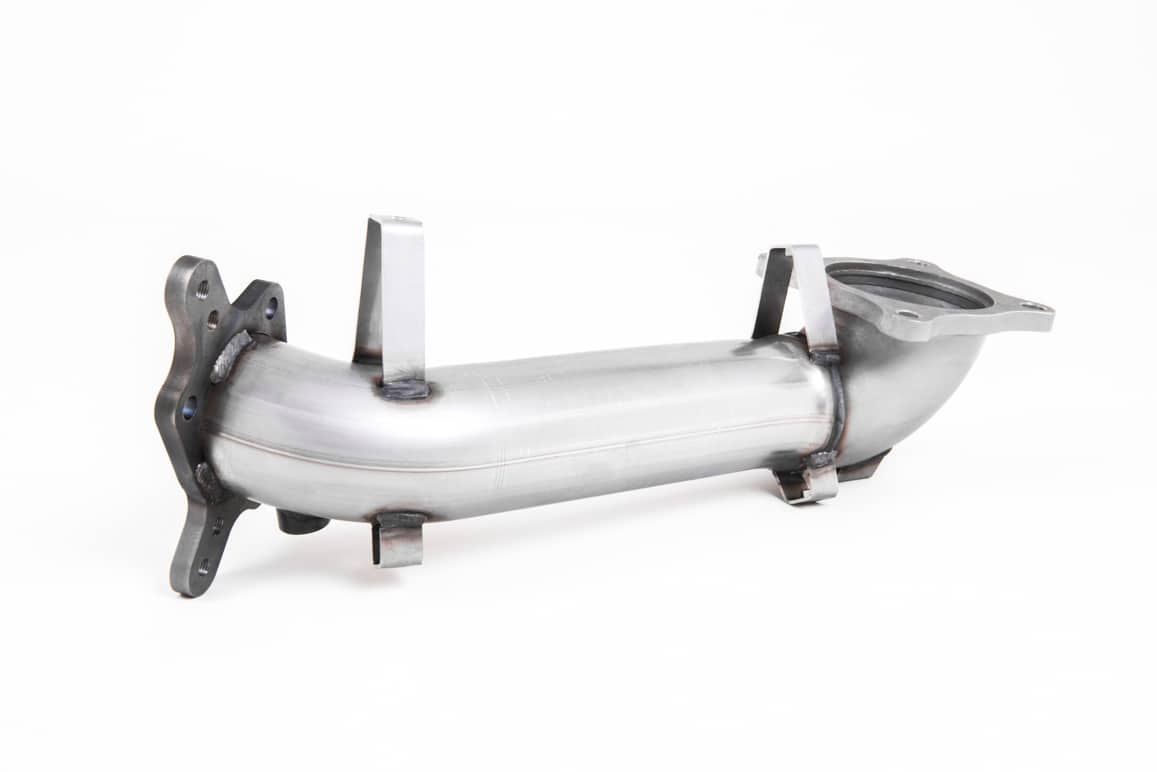 Milltek Sport Large-Bore Downpipes are perfect when looking to improve both performance and sound. These downpipes are fabricated with a larger diameter than standard OEM parts, meaning that there is significantly more space for more gas to exit the engine and pass through, increasing efficiency. Used with our Catalyst Bypass Pipe, you can expect significant power-gain without any restriction on gas-flow made by a catalyst. – This product is intended for motorsport use only and requires Stage 2 ECU Remap.