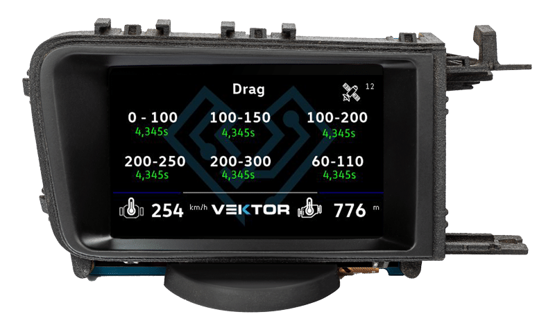 With the help of the integrated 30 Hz GNSS chip and a Dead Reckoning Sensor Fusion, you can experience ultra accurate acceleration of your car.